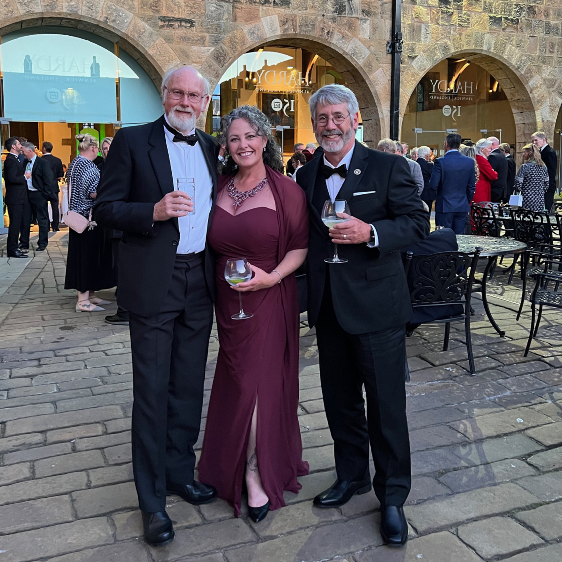 As the champagne flutes emptied, the cheery guests made their way into the Grand Hall, where tables set to perfection awaited. At the head table, the Duke and Dutchess of Northumberland sat with honored guests as we enjoyed a new film marking Hardy's 150th Anniversary. A few introductions followed, and a presentation to his Grace of a handsome Anniversary St. George reel. Finally, he spoke of his family's long connection to Hardy and his personal penchant for the brand.