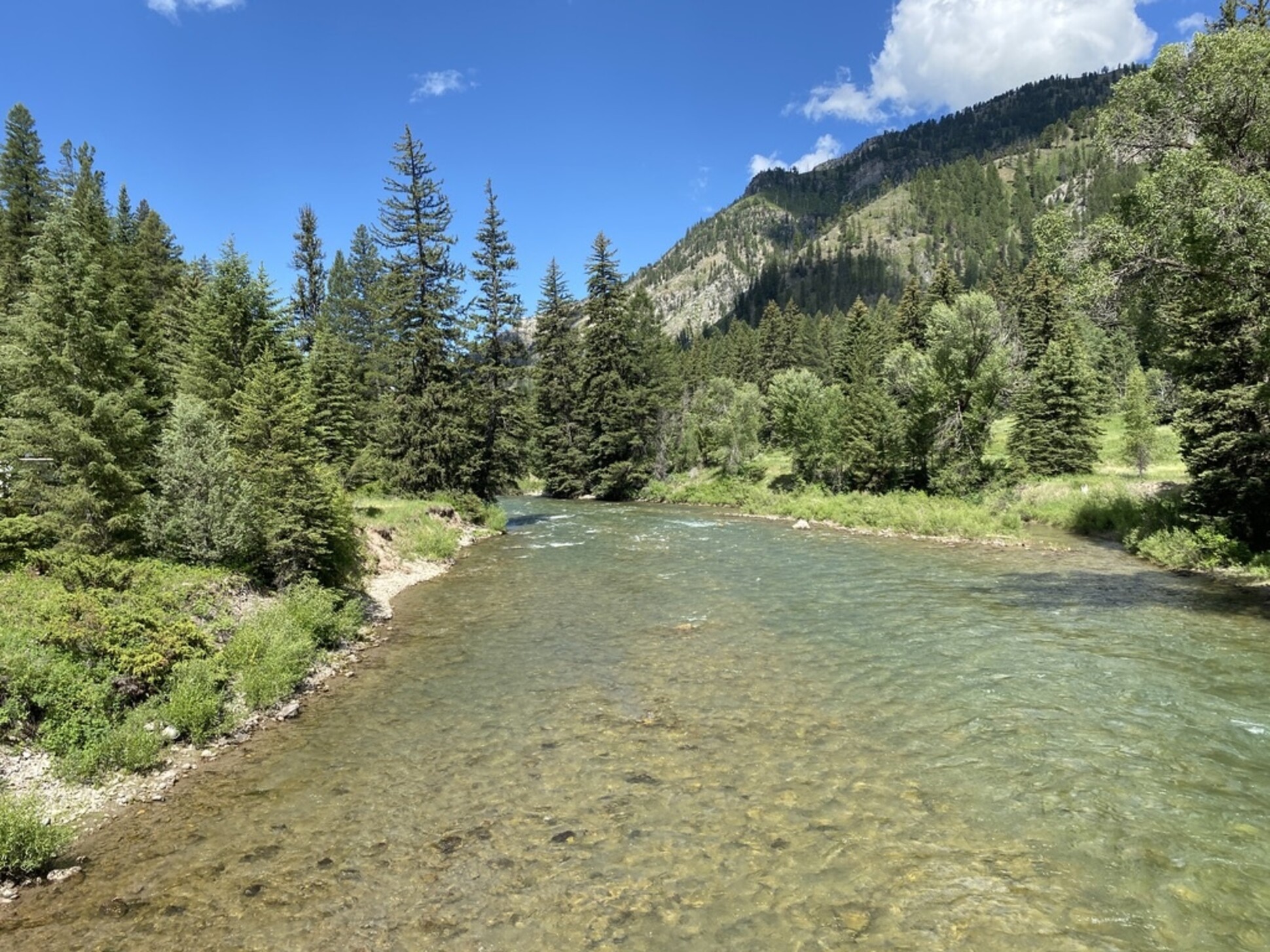 The road winds alongside the river, climbing up and away, then dropping down again — much like the drive along the Crooked River outside Prineville, Oregon. With rumbling, rolling rapids and stretches of quiet, clear water, the Greys River is stunning.