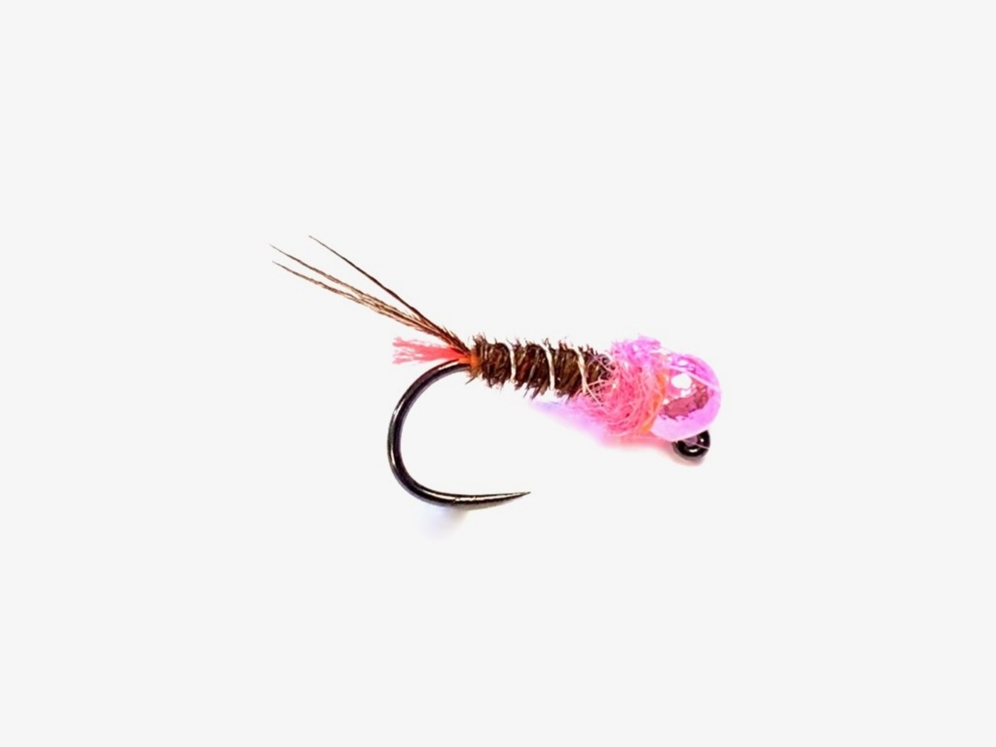 I took what was a great pattern and starting rooting around the desk to find what else I had that might be interesting. Right away I found some pink beads. So I substituted the pink bead for the gold I had been using. I tied the fly the way I had been. When I got to the abdomen I substituted pink dubbing, whip finished the head and had a what the heck moment. Well, what the heck wasn’t what really ran through my mind..... that’s the PG version. To say I was disappointed was an understatement. This thing was ugly! All I could think was it looked like a Frenchie in drag, pink tail, pink boa, and a pink hat...