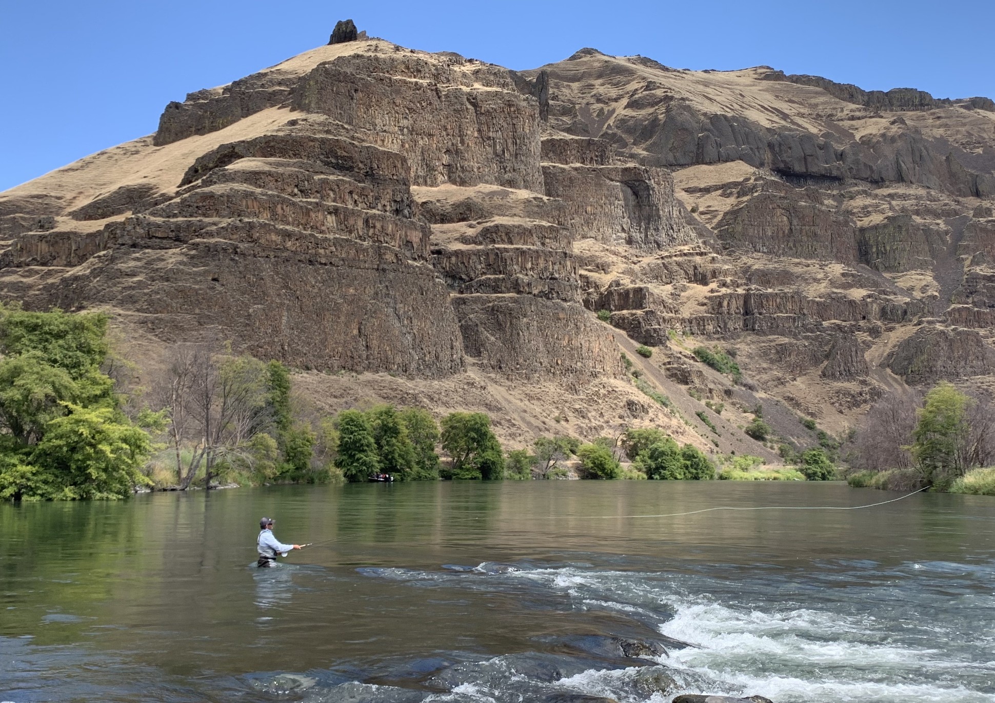 As summer rounds the corner to fall, and the days start getting shorter, our thoughts and attention turn towards summer steelhead. Every day we are checking fish passage counts on the Columbia looking for that big uptick. 100, 200, 500, 1000 fish a day going over the Dalles Dam. As those numbers grow so does our urge to swing a fly for an elusive steelhead. This early in the season there aren’t a lot of fish around but if you are lucky to find one you are rewarded with a fiery aggressive bar of silver. These fish are bright, shiny, and full of energy, quite often making big runs and lots of jumps.
