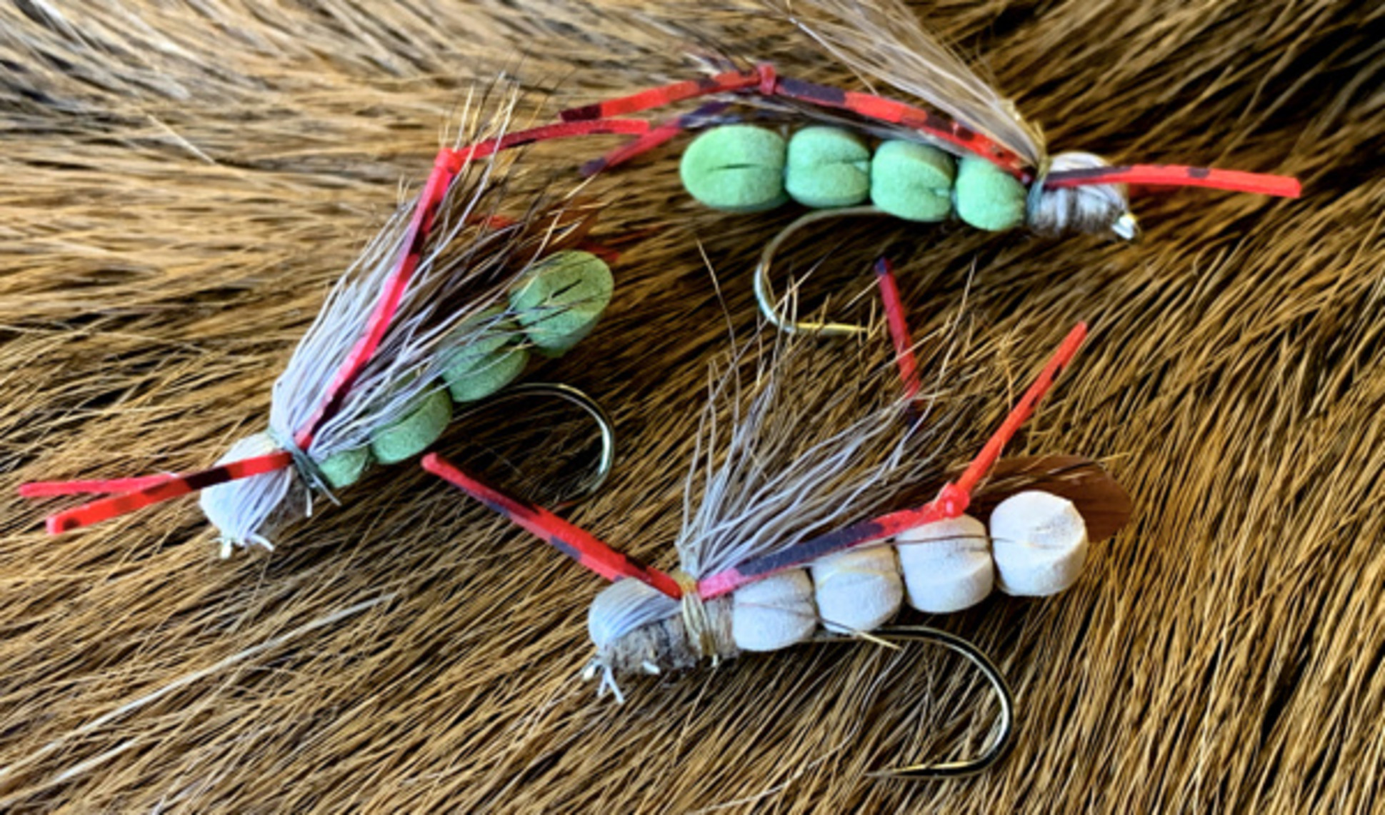 As we slip into late summer and fall these critters move onto the food chain and become a good option on any Trout stream or lake. Yes, I said lake. Nick's fondness for this red legged foam concoction has been nurtured by his successful forays on a particular area lake. While it would be rude to just blurt out the name of this body of water, I can tell you that it has popped up in the newsletter lately... just say'n.