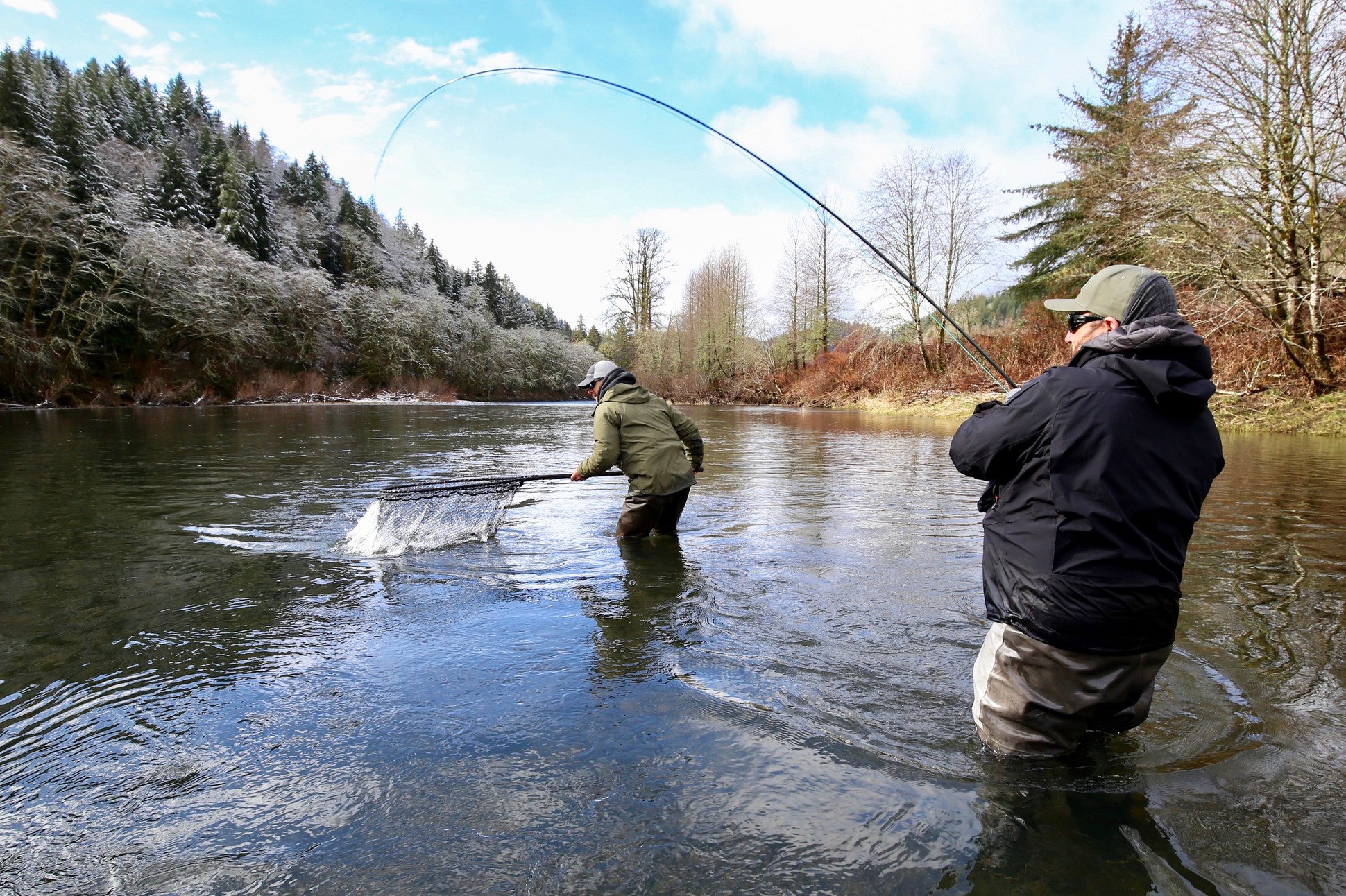 When I first step into the water, I usually have a sink tip in mind; normally, I start with 12.5’ of T-11. That is my go-to sink tip for winter fishing. If I find that I am hanging up more than every once in a while, I go to a shorter tip. You should be fishing deep, but not so deep that you are always hung up on the bottom, and losing flies left and right.