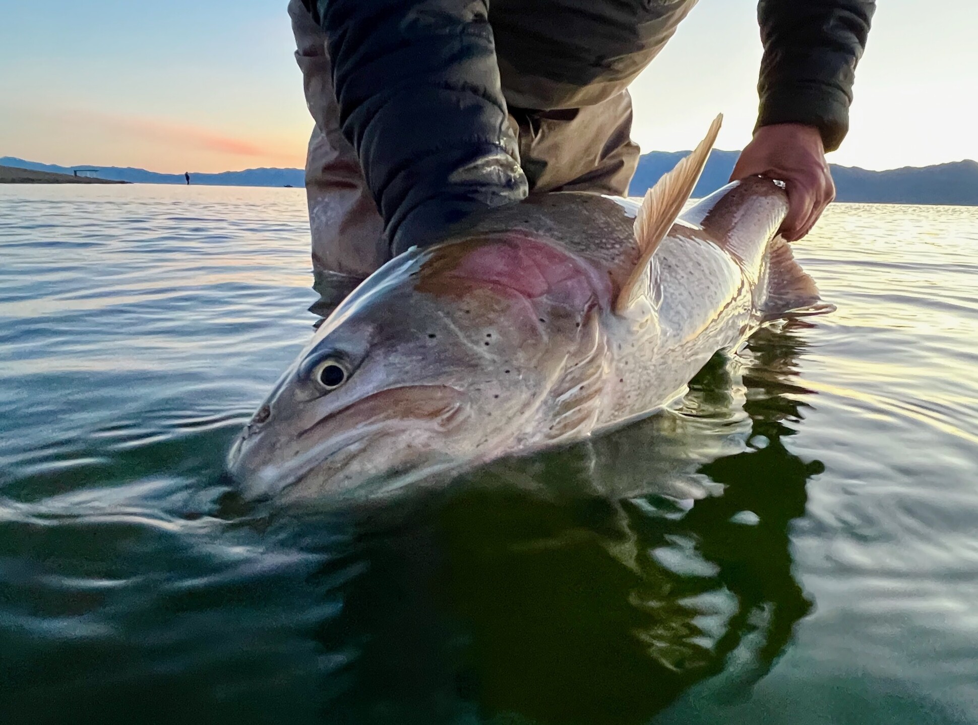 After a good night’s rest and never lacking optimism, we greeted the next day on our ladders, watching cruising fish break the mirrored surface or slip past our ladders. Suddenly, Jennifer came tight to a fish in close, and I could see she was trying to get a good hook set. The fish throbbed the rod tip a few times; then, the line went slack. I knew she was as devastated as I was, but there was nothing to do; the fish was gone. We fished until breakfast called, then tidied up the camp and started packing up our gear. While not a raging success, our visit to Pyramid was nevertheless quite memorable for the fish we saw, the one we landed, and this beautiful area's wonderful solitude. I don’t think we’ll be waiting 6 years for our return to Pyramid Lake. Finally, Griz was packed, and it was time to point the hood south towards Utah and our next adventure. Stay tuned…