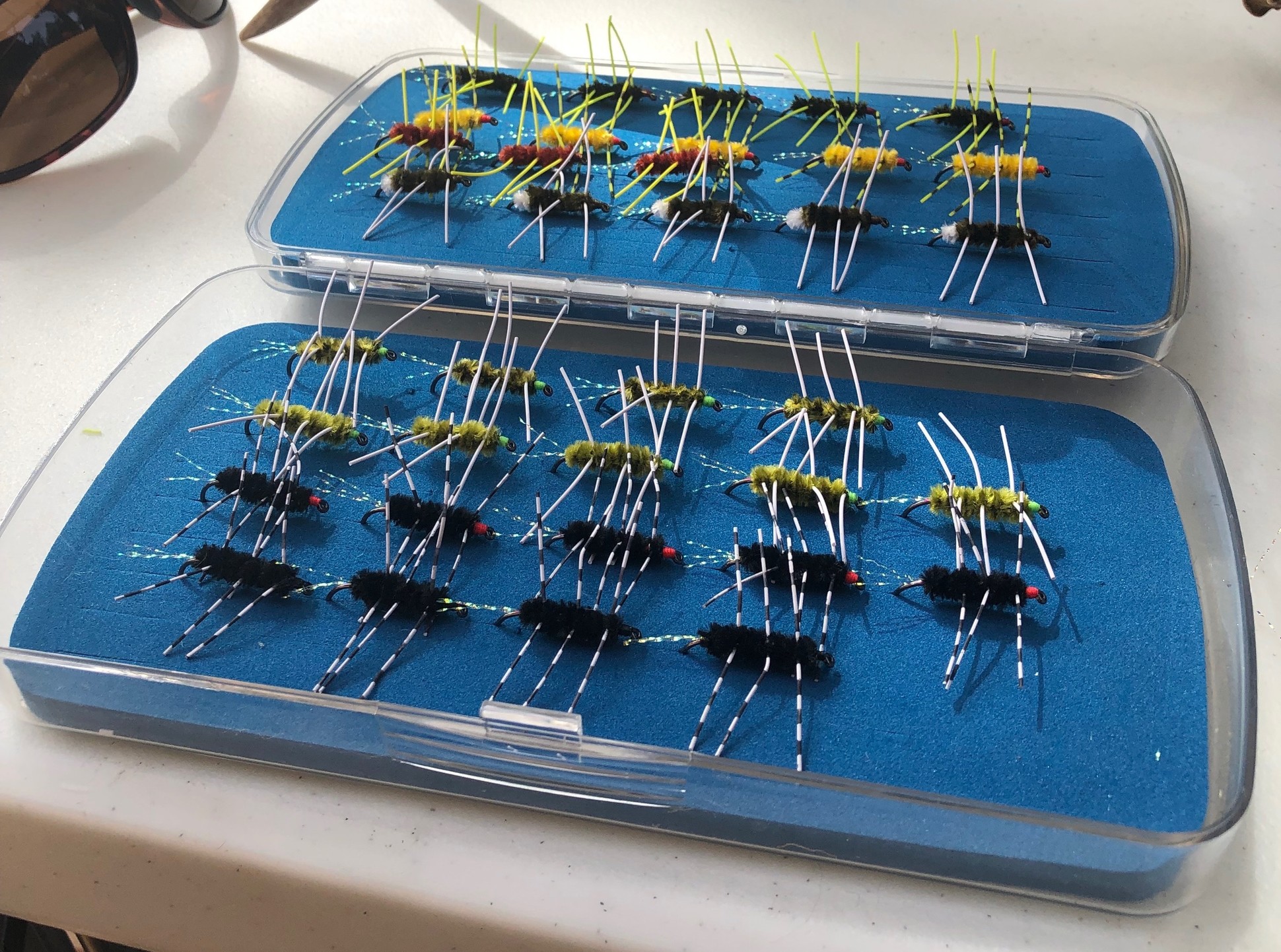 "I Got the idea in the first Addition of the NW fly fishing magazine in the summer of 1999 , there Terry Jarmain from Reedsport tyed these girdles , I took the pattern starting using it tyed lots of colors added weight and a sparkle tail and still works today."