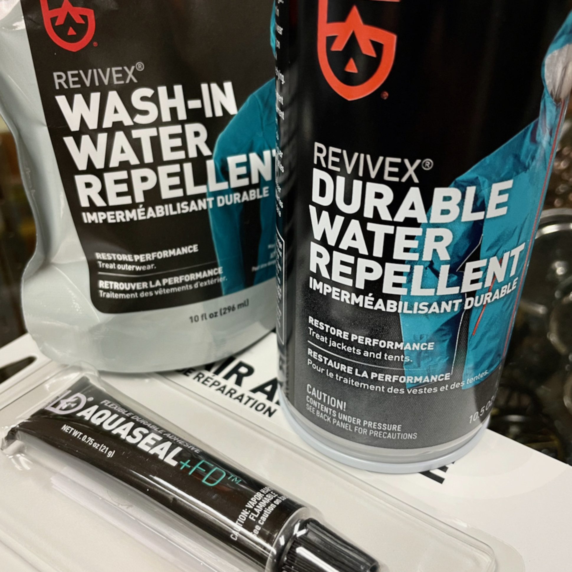 For GoreTex, the first thing to do is clean the item. Waders and jackets can be washed in the washing machine on a gentle cycle with a powdered detergent that does not contain fabric softeners. I use Revivex instead; it is designed for breathable fabrics and restoring the water repellency lost over time. (Water repellency and waterproof are two different things, but we'll get to that.) Jackets can be dried at a low temperature, but waders should stay out of the dryer. Be sure to rinse waders well and let them dry inside and out.