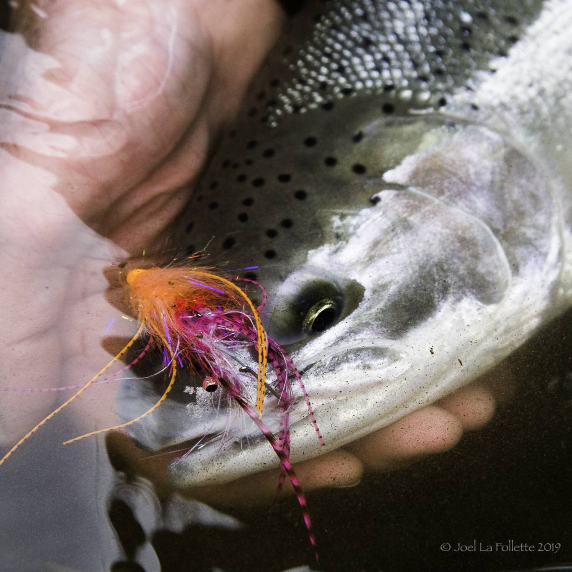 Nearing the end of our float, I had fished through the final run and was walking back to the boat when Jay's reel started to sing. Rob and I dash upstream to assist and soon a scrappy chrome fish was resting in the net. Jay had been flipping the same short cast from the anchored boat and scored the only fish we saw for the day; proving when the water is high, the fish are in close. Remember that when you're bombing casts to the far side of the river...
