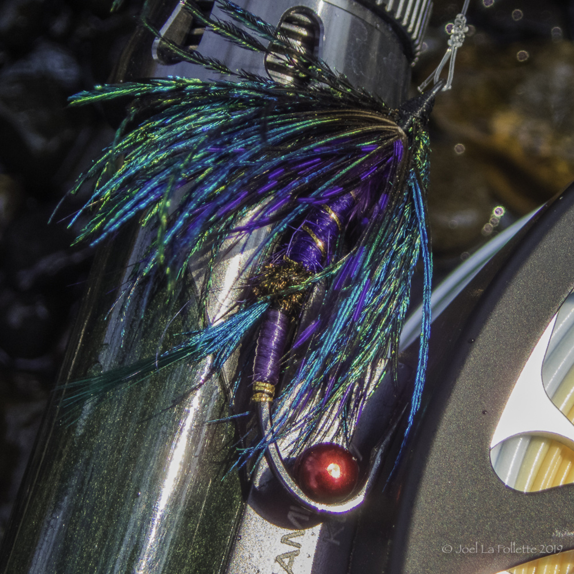 Hackle: Purple Guinea under with blue Peacock breast feather over