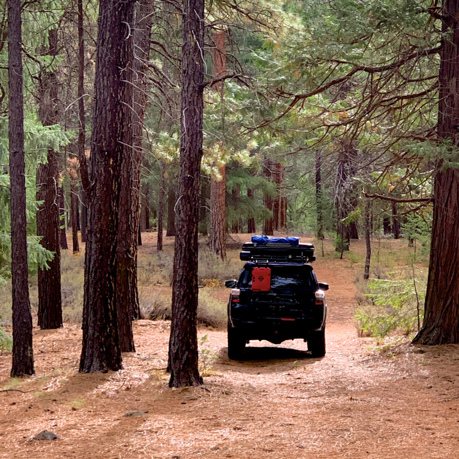 The advantage of 4-wheel drive, self-contained travel, is that home is where your park it, and before darkness fell, we had a comfortable camp set up and dinner on the stove. The wind continued to gust throughout the night, sounding like ocean waves crashing on the shore as it pushed through the Pine forest. We nevertheless slept comfortably in our roof-top abode, undisturbed by the tempest howling outside.