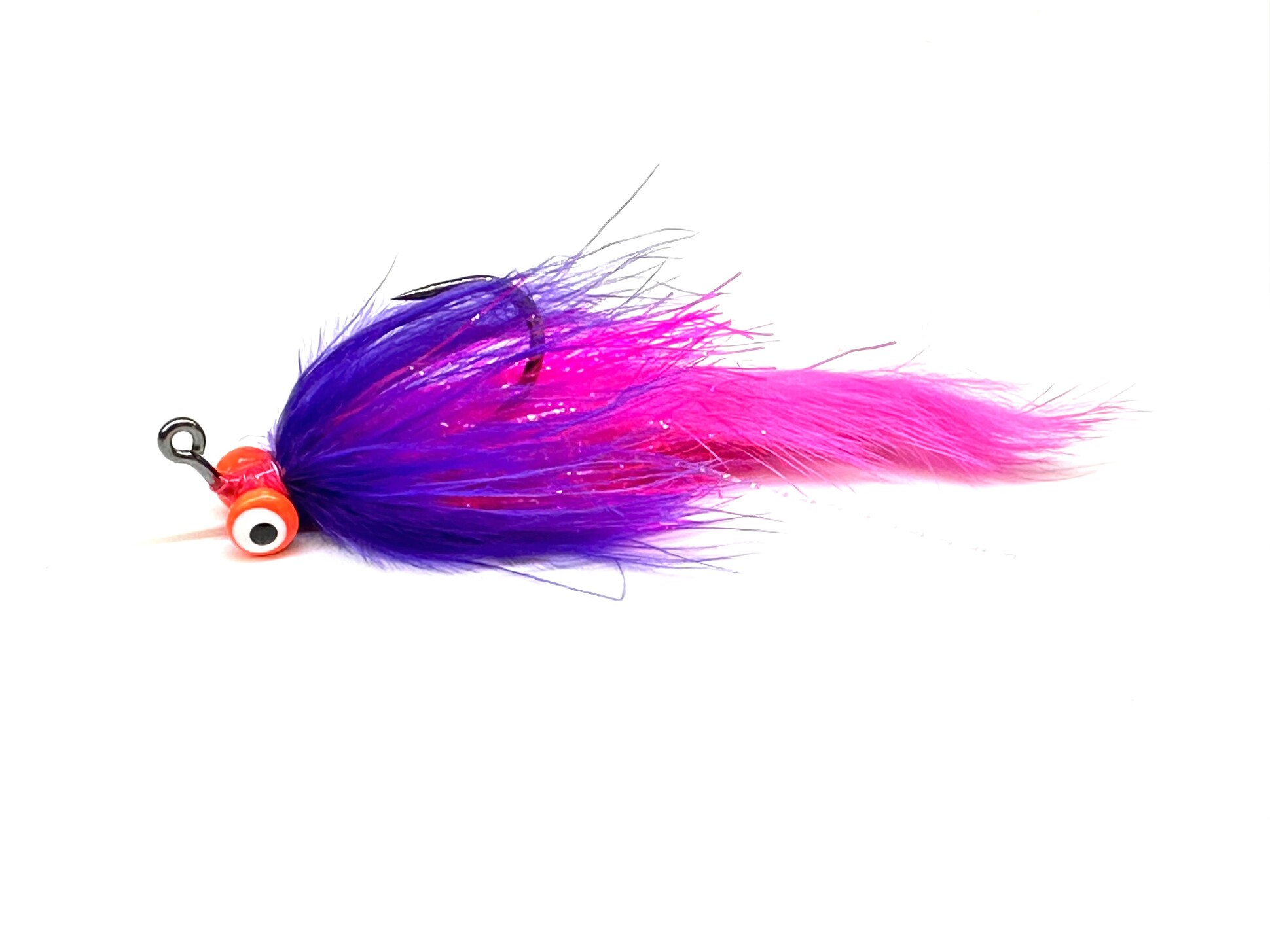 A few years back, I was trying to develop a more modern Coho fly that would be easy and quick to tie but also fish effectively, sinking fast with a lot of movement and riding hook point up. I knew a jig hook would be the best choice, especially a heavy wire of a larger size. The Aqua flies heavy wire jig would be the perfect choice. Matched up with the pink or orange double pupil eye in medium or large, you’d have a fast sinking fly. Of course, I will use rabbit for the tail, as it has maximum movement and comes in many colors. Make the body out of polar chenille for some bulk, but it also is synthetic, so it doesn’t absorb water, and the perfect fly is born.