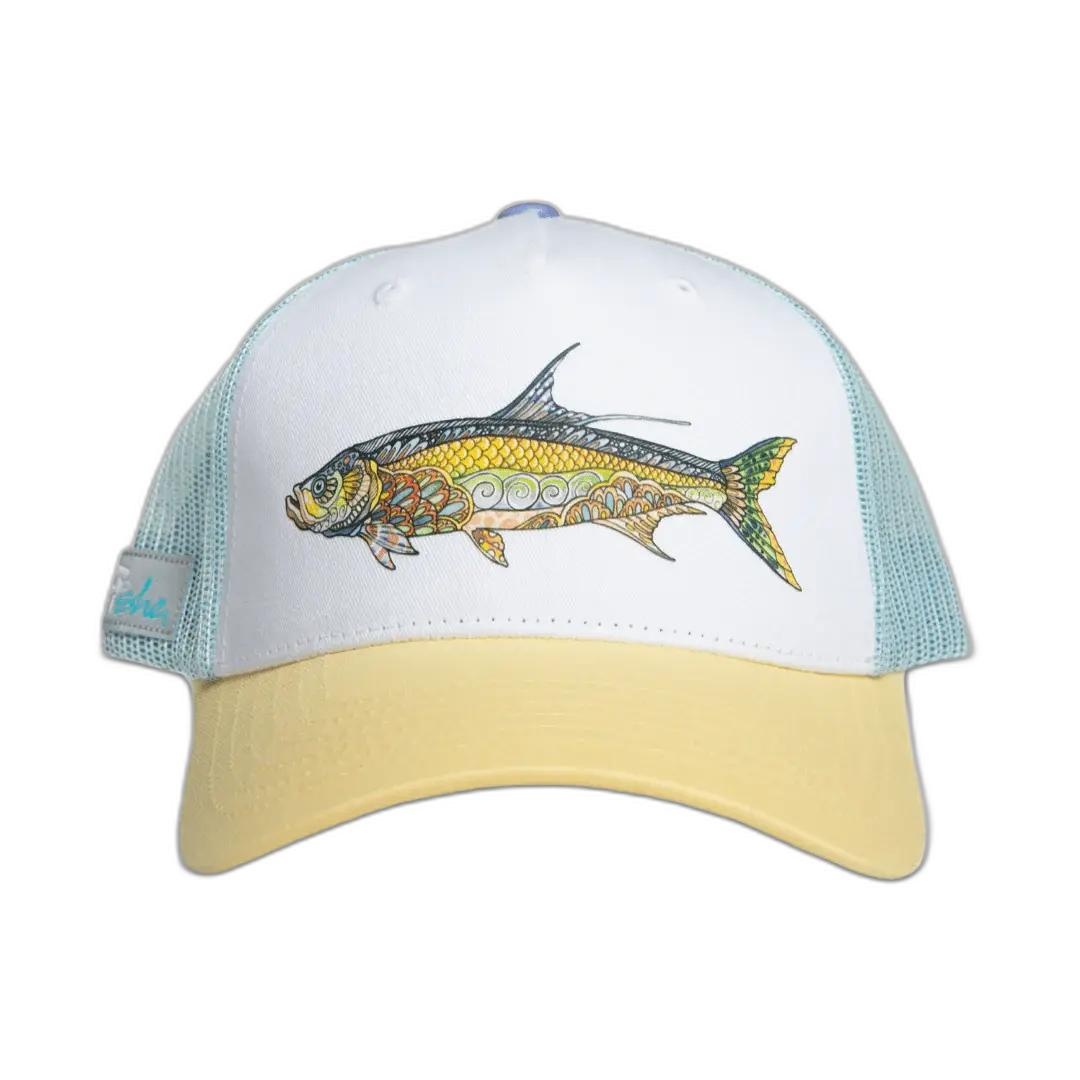 Embrace the adventurous spirit with the Tropical Tarpon Trucker Hat from Fishe Wear. This hat combines vibrant design with practical features, making it an ideal choice for both fishing enthusiasts and outdoor explorers. Crafted with a breathable mesh back and a classic snapback closure, it offers a cool and customizable fit.